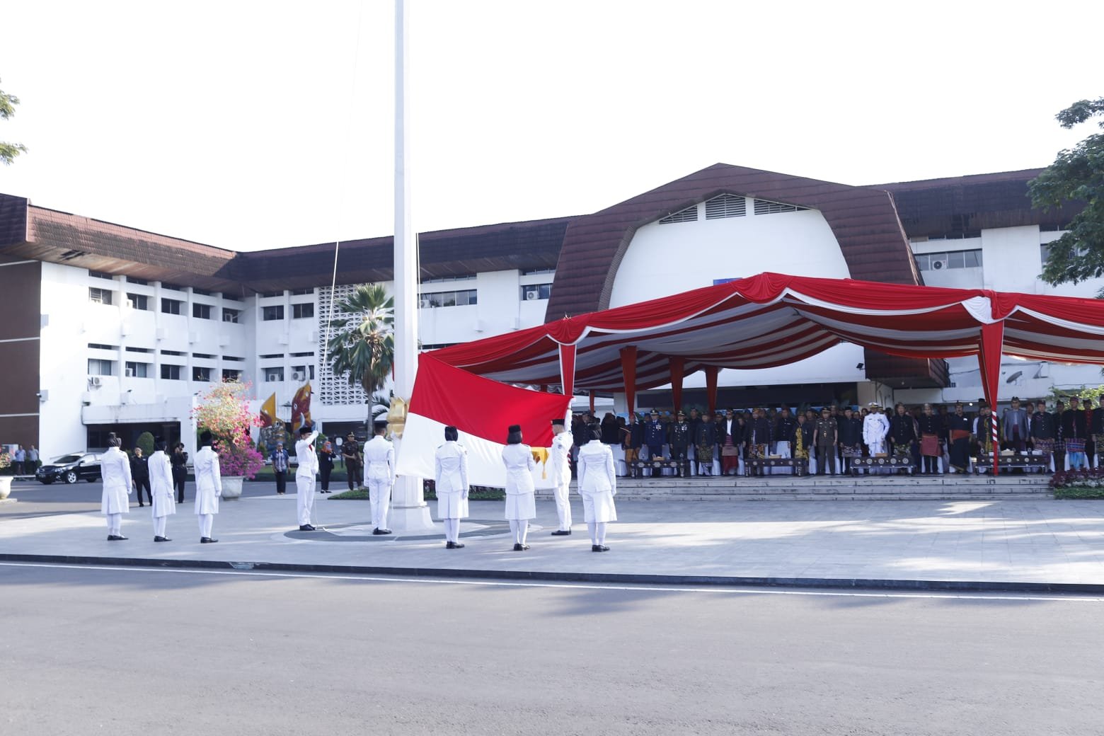 Sin.co.id-Hari Kesaktian Pancasila 1 Juni diperingati di seluruh Indonesia dengan tema “Gotong Royong Membangun Peradaban dan Pertumbuhan Global”. Pemerintah Provinsi Nusa Tenggara Barat menggelar upacara bendera di lapangan Bumi Gora kantor Gubernur, Kamis (01/06) dipimpin oleh Sekretaris Daerah NTB, HL Gita Ariadi, MSi.